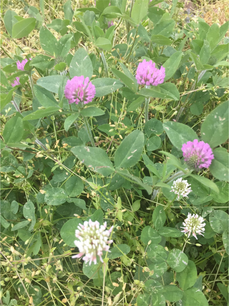 Red and white clover in the bee yard on May 4, 2017. ©Erik Brown
