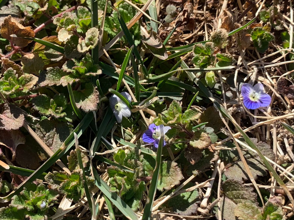 I saw my first local flower of 2022 in our lawn today. I was on my way to look at the bees and happened to see a couple flowers of creeping speedwell, or Veronica filiformis. This low-growing plant is well adapted to typical lawn care practices, so is considered by some to be a pesky weed. I celebrate it as a later winter flower that provides some early food for bees and other insects.