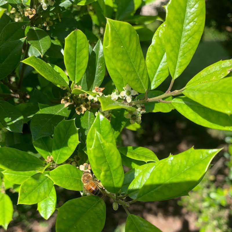 We are still in the thick of our nectar season. This week we’ve had holly blooming. Holly is a great pollinator plant, with small white flowers that are very attractive to all kinds of bees. There are varieties that bloom in early spring and late summer, so they provide a long season of nectar. In the winter, the pollinated flowers become berries that birds and other animals enjoy.
