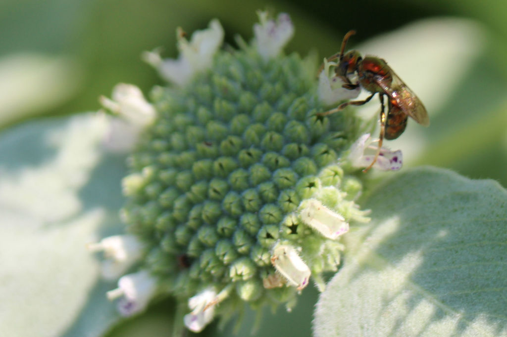 Finding a picture of this bee proved somewhat impossible. I thought perhaps iNaturalist would have them, and while they do show the subgenus, no pictures are available. I then remembered that I’d seen Halictidae bees in my yard, and dug out an old post A good beginning is Halicidae the battle. That post has a number of pictures, including the following. Not our Urohalictus bee, but at least it is a Halictidae.